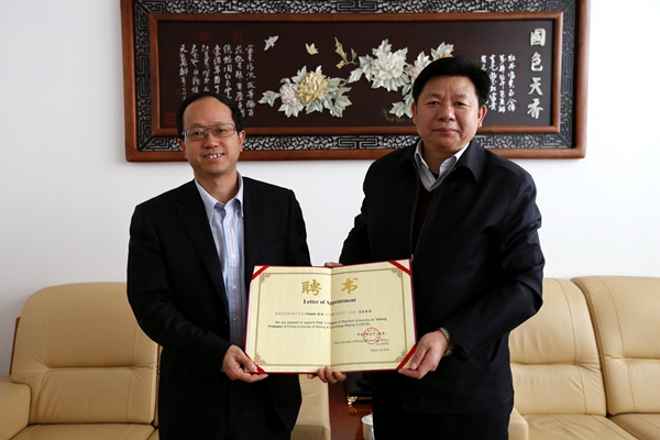 On the afternoon of March 18th, Prof. Kewen LI from Stanford University was honored Visiting Professor of CUMTB. President Yang Renshu awarded the Letter of Appointment to him. Prof. Kewen LI gave a theme lecture to faculty and students of CUMTB. He introduced the latest research results achieved by his research team and had an in-depth discussion with students and teachers present.