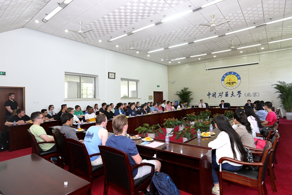 On the afternoon of May 12th, Prof Xinli Wu from College of Engineering, Pennsylvania State University, U.S. (hereinafter referred to as PSU) paid a visit to CUMTB along with 44 students. President Yang Renshu met with the delegation. The students from the two universities communicated with each other in a warm and friendly atmosphere and introduced each university’s history and culture respectively. After the meeting, CUMTB students accompanied the PSU students to have a campus tour, and then performed Chinese calligraphy in the meeting room.