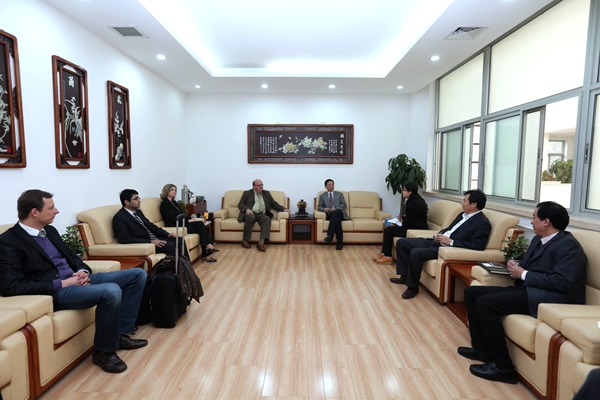 On the morning of October 23, Prof. Oliver Langefeld, Vice President of German Clausthal University of Technology, accompanied by Dr Elisabeth Clausen, assistant professor of mining department, and PhD candidates Amit Agasty and Moritz Kellner visited our university. Jiang Yaodong, Vice President of CUMTB met with the delegation, and introduced our university’s enrollment scale, characteristic disciplines, university features as well as its important role in China’s higher education system and mining industry. Oliver Langefeld introduced their university’s staff-student ratio, teaching system and development strategy. Both sides hoped that this visit could promote postgraduate exchange project between the two universities, and further encourage professors of both sides to conduct scientific research cooperation in subjects of common interests.