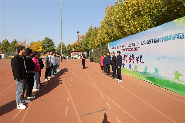 On the afternoon of October 24, CUMTB held the award ceremony for the September Star of Campus Health Running for the first semester of the 2022-2023 academic year at the Shahe Campus. An Yu, Deputy Secretary ofthe CUMTBPartyCommittee and Director of the Sports Committee of CUMTB, presented the 'Star of Campus Health Running' honorary certificates to students from the 2021 and 2022 batches who achieved the top five rankings for both male and female participants in the September health run. He congratulated the winning students and emphasized the significance of health running, highlighting its role in physical exercise and character development. An Yu encouraged students to actively participate in sports, foster good lifestyle habits, and enhance their overall well-being.
