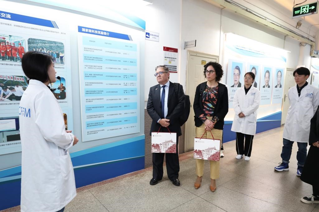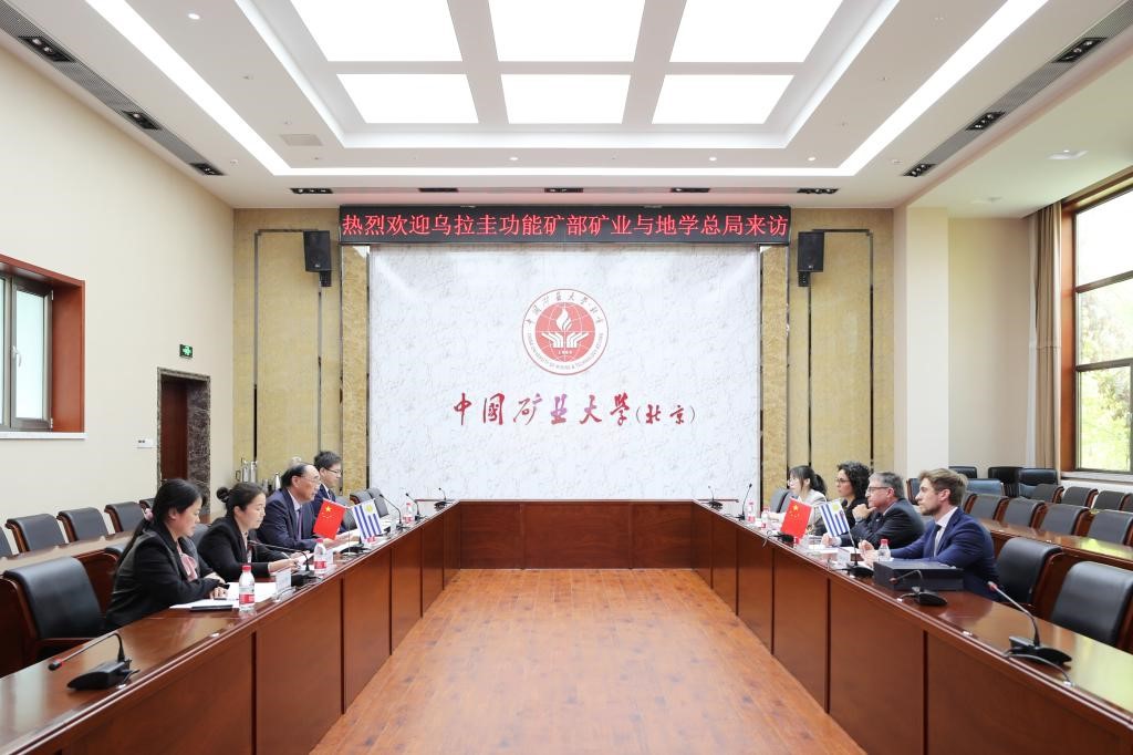 On the afternoon of October 30th, Marcelo Pogressi Sebastiani, National Director of Mining and Geology from Ministry of Industry, Energy, and Mining of Uruguay, along with the bureau's technical advisor, Viviana Gianotti Garcia, First Secretary of the Uruguayan Embassy in China Ignacio Guido, and embassy secretary Jiang Huanwen, visited our university. Academician Ge Shirong, CUMTB President, met with the delegation, and Vice President Zhao Fenghua accompanied the meeting. Representatives from International Cooperation and Exchange Office and State Key Laboratory for Fine Exploration and Intelligent Development of Coal Resources also participated in the discussions.