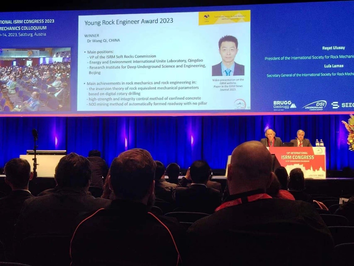 In October 2023, during the 15th international ISRM Congress 2023 held in Salzburg, Austria, the International Society for Rock Mechanics and Rock Engineering (ISRM) announced and presented the ISRM Young Rock Engineer Award. Professor Wang Qi, Vice Director of the National Key Laboratory of Prevention and Control of Tunnel Engineering Disasters and Intelligent Construction and Maintenance at China University of Mining and Technology-Beijing, was honored with the "ISRM Young Rock Engineer Award".