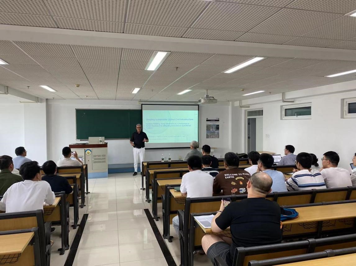 During his visit to the university, Fellow Moncef L. Nehdi also delivered a lecture titled "Shaping Sustainable Global Civil Infrastructure: A Systems Thinking, Deep Generative AI, and Performance-Based Approach for Mitigating Embodied and Operational Carbon" to faculty and students of relevant disciplines. The lecture was warmly received by the audience.