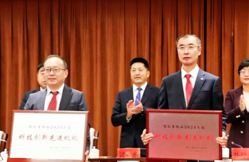 On February 14, the Erdos Technology Work and Party Style and Clean Government Construction Conference was held at the Erdos International Convention and Exhibition Center. The Erdos Science and Technology Bureau presented awards to advanced banners and districts, advanced scientific research institutions, and outstanding science and technology envoys. Bian Dong, Secretary of the Party Group and Director of the Erdos Science and Technology Bureau, attended the meeting and delivered a speech. The Inner Mongolia Research Institute of China University of Mining and Technology (Beijing) continued to lead in the 2024 annual performance evaluation and was awarded the title of Advanced Institution for Technological Innovation for consecutive years.