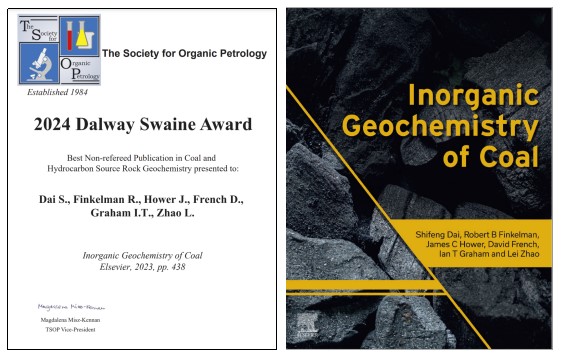 The international Dal Swaine Award is named after the renowned Australian energy geologist Dal Swaine, who made outstanding contributions to the fields of coal geochemistry and environmental geochemistry. The award honors papers or monographs that have made significant contributions to the geochemistry and mineralogy of coal and hydrocarbon source rocks. Typically, only one research achievement is recognized with the Dal Swaine Award each year. The international research team led by Professor Dai Shifeng, including Professor Robert B. Finkelman from the University of Texas at Dallas, Professor James C. Hower from the University of Kentucky, Professor David French and Dr. Ian Graham from the University of New South Wales in Australia, and Professor Zhao Lei from our university, co-authored the monograph "Inorganic Geochemistry of Coal" (Elsevier, 2023), which won the 2024 Dal Swaine Award.