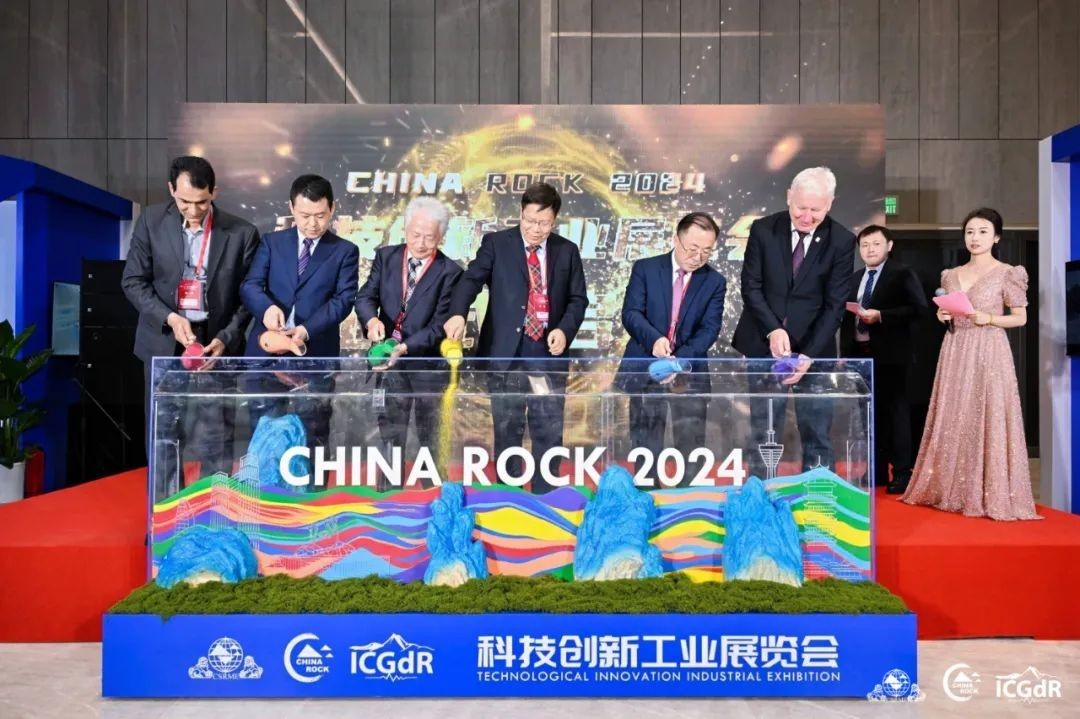 Amid warm applause, the guests jointly lifted the colored sand symbolizing technological innovation and slowly poured it into the exhibition board. This symbolized that rock mechanics and engineering professionals had gathered together, pooling their wisdom like a tower, to jointly push scientific research to new heights. It also officially kicked off the CHINA ROCK 2024 Technological Innovation Industrial Exhibition.