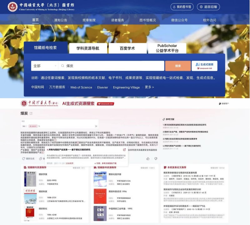 CUMTB Library Officially Launches DeepSeek-Based "AI Generative Resource Search"