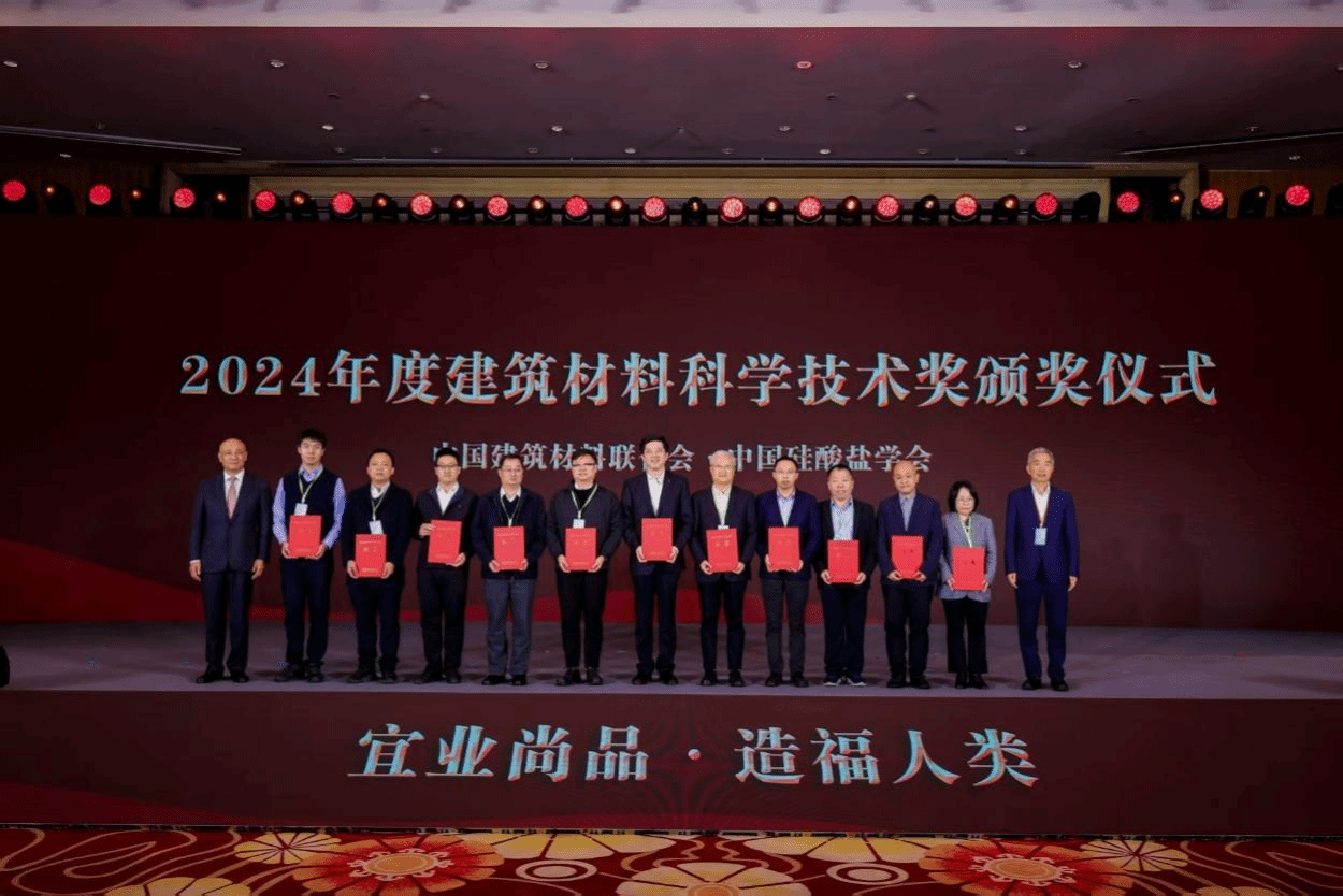 On December 3, the 2025 Building Materials Industry Conference was held in Ningbo, Zhejiang Province, jointly organized by the China Building Materials Federation and the Chinese Ceramic Society. During the conference, the Industry Conference on Scientific and Technological Innovation was convened, and a ceremony was held to present the 2024 Building Materials Science and Technology Awards, with a total of 69 projects receiving honors. The project titled “Key Technologies and Applications for the Green Preparation of Low-Carbon Aluminosilicate Solid-Waste-Based Cementitious Materials” won the First Prize of the Science and Technology Progress Award of the 2024 Building Materials Science and Technology Awards. The University served as the leading institution for the project, with participation from Wuhan University of Technology, Shanghai Geopoly New Materials Co., Ltd., China Northeast Architectural Design & Research Institute Co., Ltd., and Yingtou Information Technology (Shanghai) Co., Ltd. The principal contributors to the project include Wang Dongmin, Chen Wei, Liu Ze, Wei Peng, Zhang Xinlong, Li Qiu, Wang Jixiang, Zhu Yingcan, Li Xiaohui, Liu Tao, Wang Zhenbo, Sun Rui, Fang Kuizhen, Li Bo, and Yuan Bo.